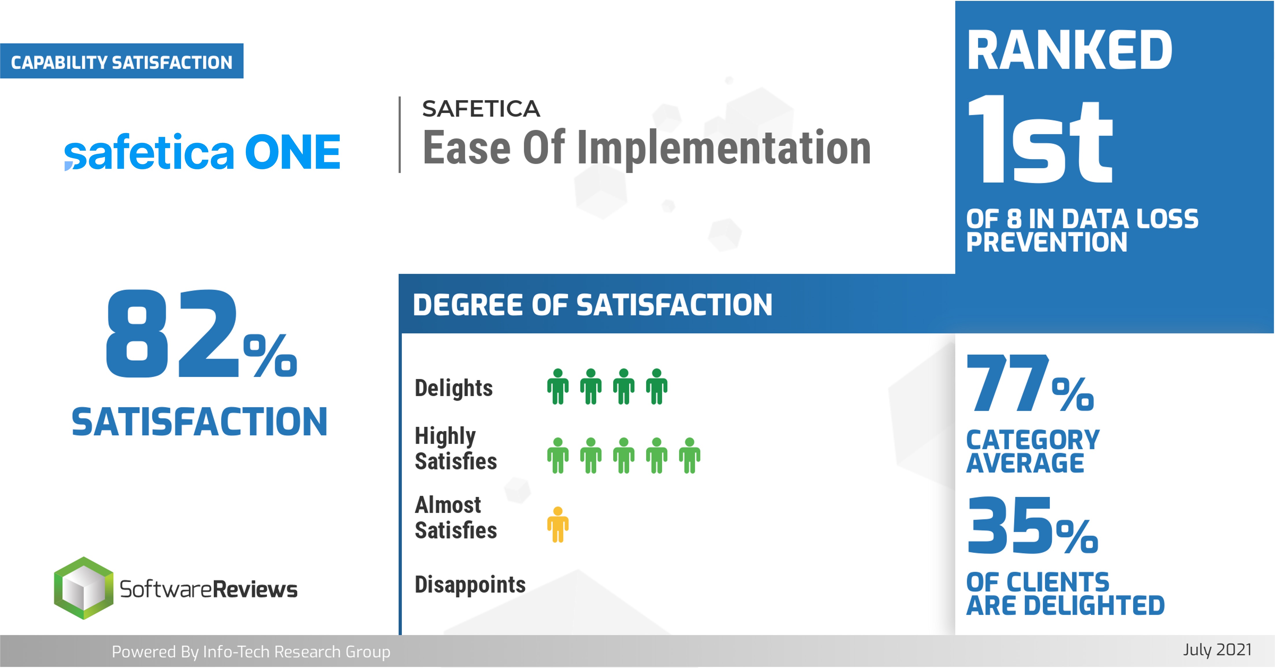 Podle komplexního přehledu trhu od SoftwareReviews si Safetica vydobyla své místo v kvadrantu DLP Leaders. Safetica se umístila hned za celkovým vítězem kvadrantu, společností McAfee, a primárně byla oceněná v oblasti Net Emotional Footprint a za poskytování výjimečné podpory.