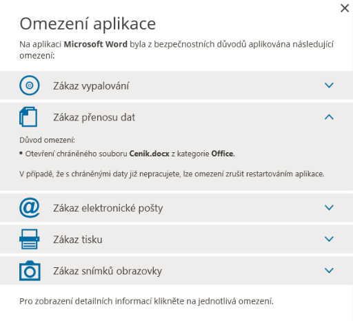 Změna se týká celé řady upozornění jako jsou varování při otevření chráněného dokumentu anebo dialogů s detailními informacemi o uplatňovaných omezeních. Všechna upozornění také nově obsahují jméno kategorie, která je aplikována na soubor či aplikaci, takže je jednodušší porozumět důvodům omezení.