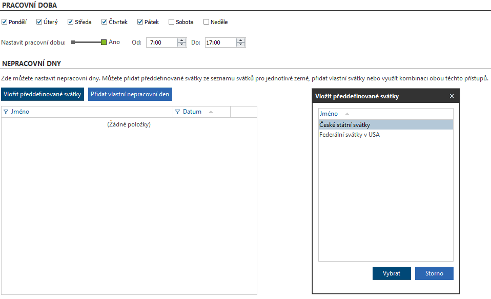 Další funkce doplněná na základě zpětné vazby od zákazníků souvisí s využitím počítače mimo běžnou pracovní dobu. Toto nastavení je dostupné v části Údržba - Nastavení klientů a umožňuje omezit monitorování a blokování aplikací a webů mimo pracovní dobu, o víkendech a svátcích. To lze libovolně nastavit.