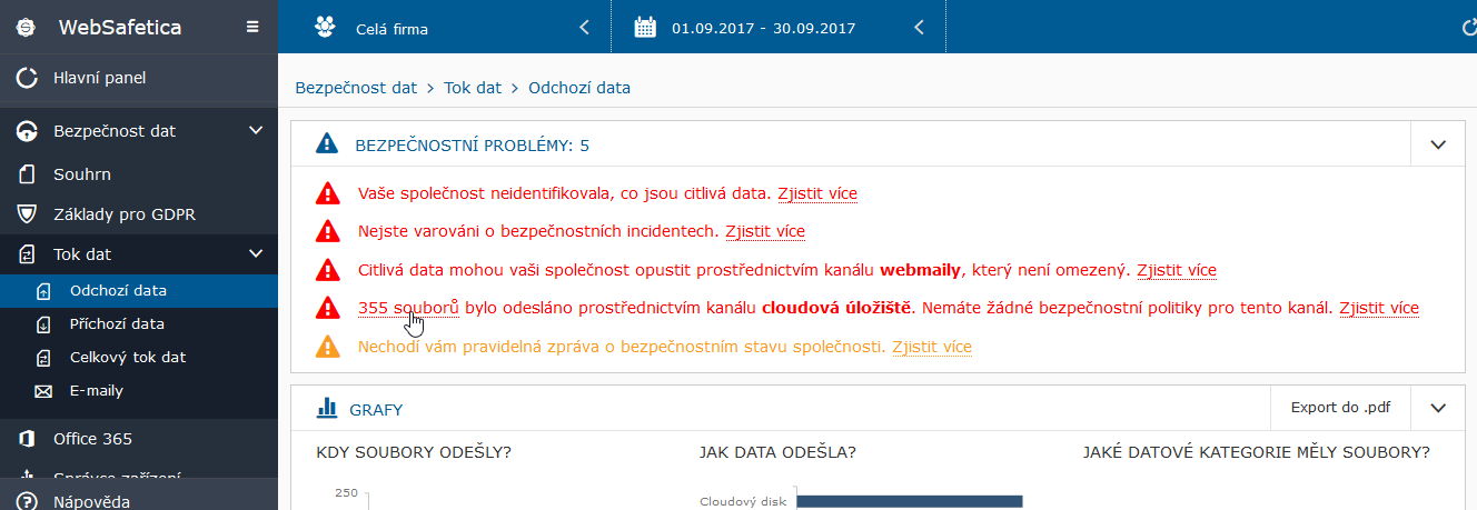 • jestli citlivé soubory odcházely povoleným způsobem – vybraným kanálem a do bezpečného cílového umístění,