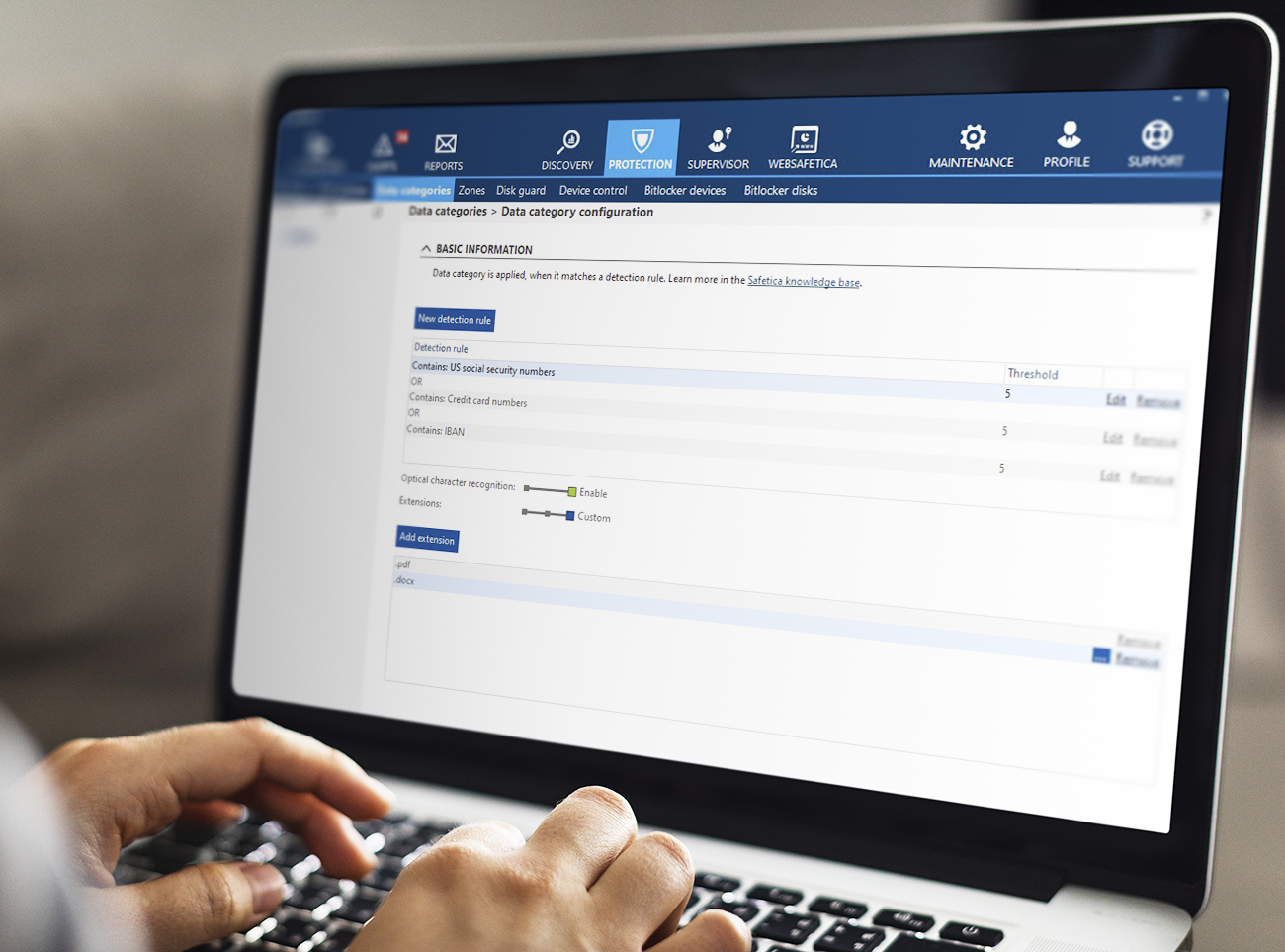 Efficient multiplatform-ready content inspection enables a less invasive DLP approach, which we boosted with smart pre-scanning to minimalize impact on user productivity. Optimized inspection technology widely improves file type support. The biggest new feature is Optical Character Recognition (OCR), which allows for sensitive data detection in scanned PDF documents and image files. Enhanced content inspection is available on Windows, with macOS support coming soon. Learn more about Safetica ONE in this webinar.