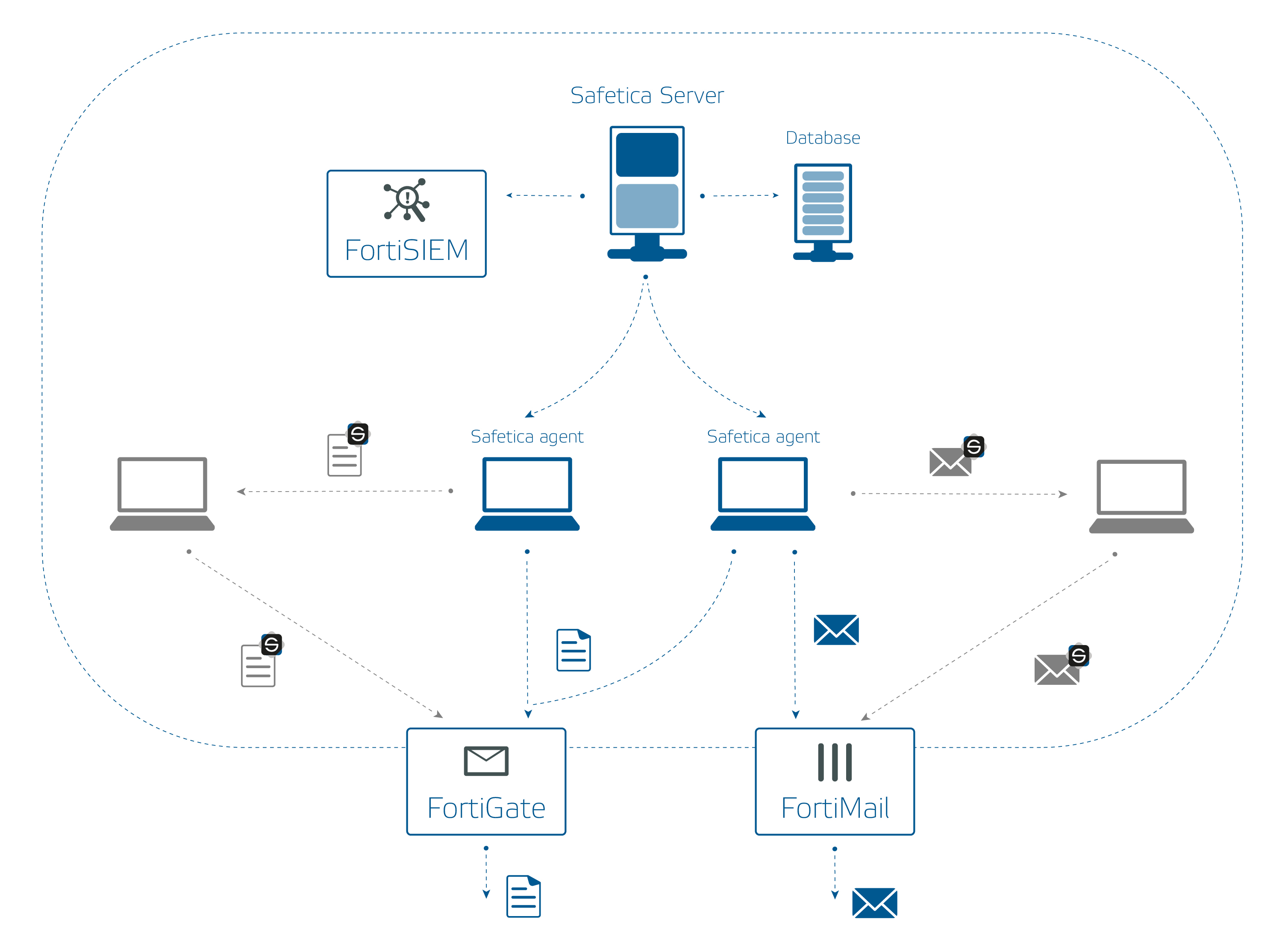In an age where, with a simple click, any file can travel across multiple channels around the world, data classification needs to travel along with them. That's why Safetica 9.3 has evolved to keep your files protected even after they've left the endpoint and traveled across all types of channels throughout your company. Powerful persistent metadata classification along with the new API-based integration with FortiGate boosts data classification and gets you detailed control over how sensitive data travels through networks and is used on endpoints. Thanks to Safetica's integration with Fortinet (FortiGate, FortiMail and FortiSIEM) you'll be able to recognize data easily wherever it is, protect sensitive files across endpoints and networks, or create a comprehensive threat management system with less effort.