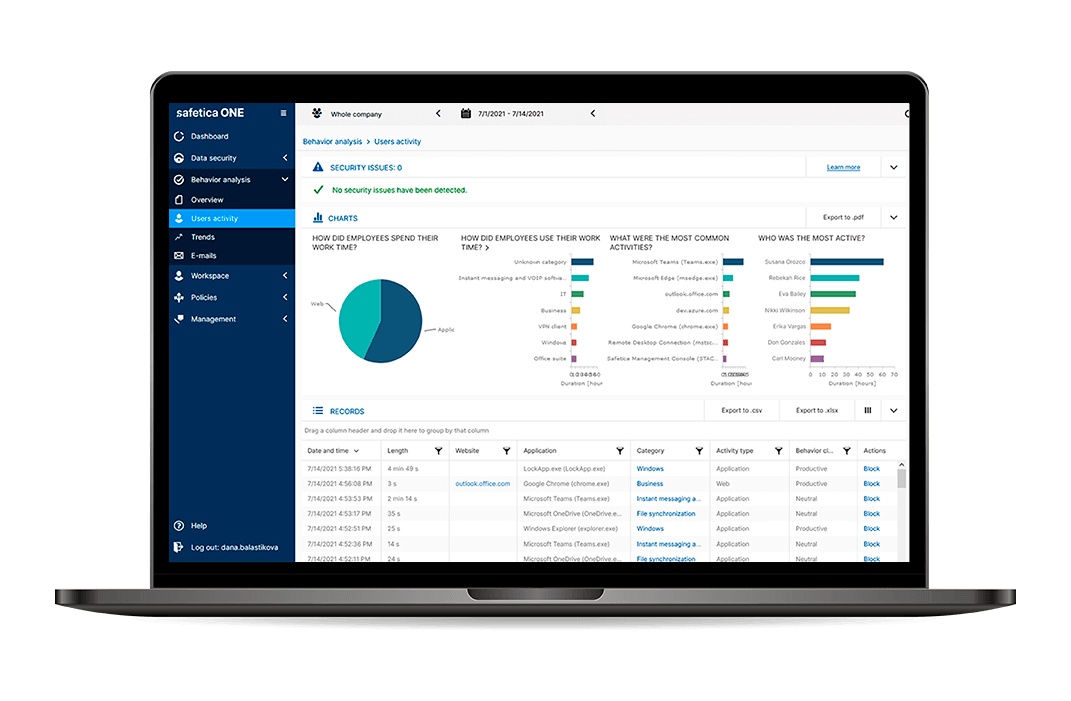 To explore the full range of features and benefits, take the next step with Safetica today. Your data privacy journey starts here! If you’re wondering how Safetica can help your particular business, schedule a free demo call with our specialists (here’s what you can expect from a demo call).