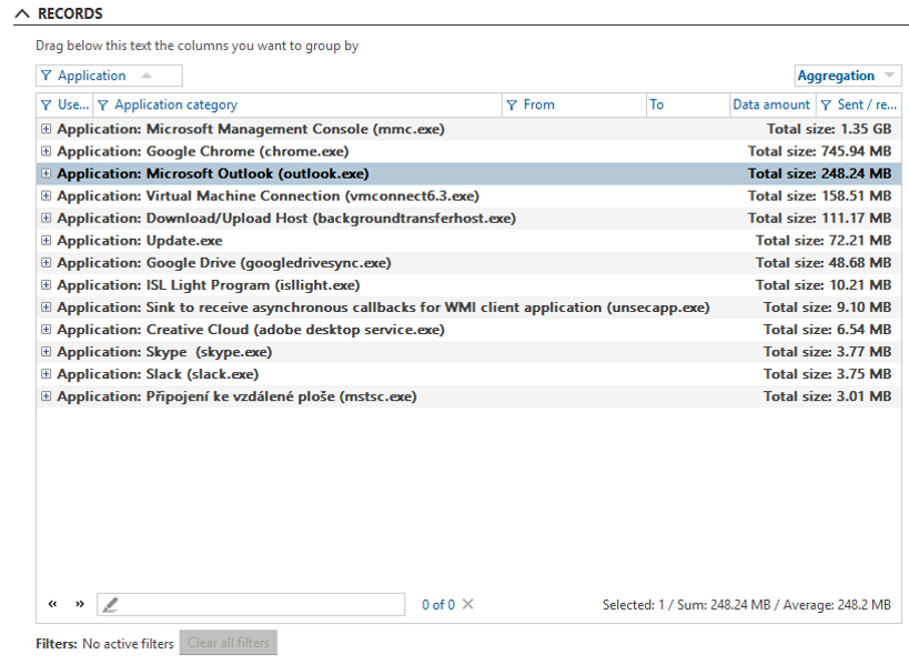 Another area we’ve improved is the Auditor module, and this time we’ve focused on the network monitoring to help you understand what is going on in your company. Have you ever wondered why is your network overloaded at a certain time of day or week, or why does your Skype quality drop once in a while? Safetica newly shows not just the amount of data transferred over time for each computer, but also which specific applications are sending and receiving the data.