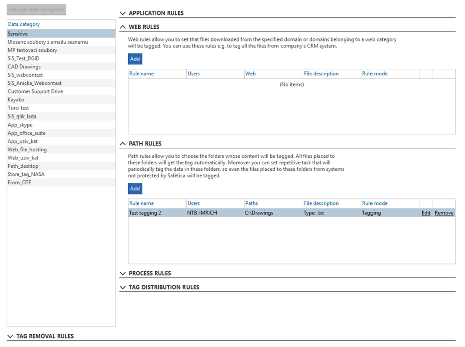 Safetica 7.5 brings a big change in how you configure DLP rules. If you have a previous experience with Safetica, you will recall that the configuration of DLP rules was split between applications and data types, and further into individual sources of the data. We have found a way to make all of this simpler. In this new version, all you need to know is where the sensitive data comes from (website, application or a path), and Safetica will guide you through the rest of the configuration. You still have the option to make the rule as complex or as simple as you need - but it will take you half as much time thanks to the new approach: